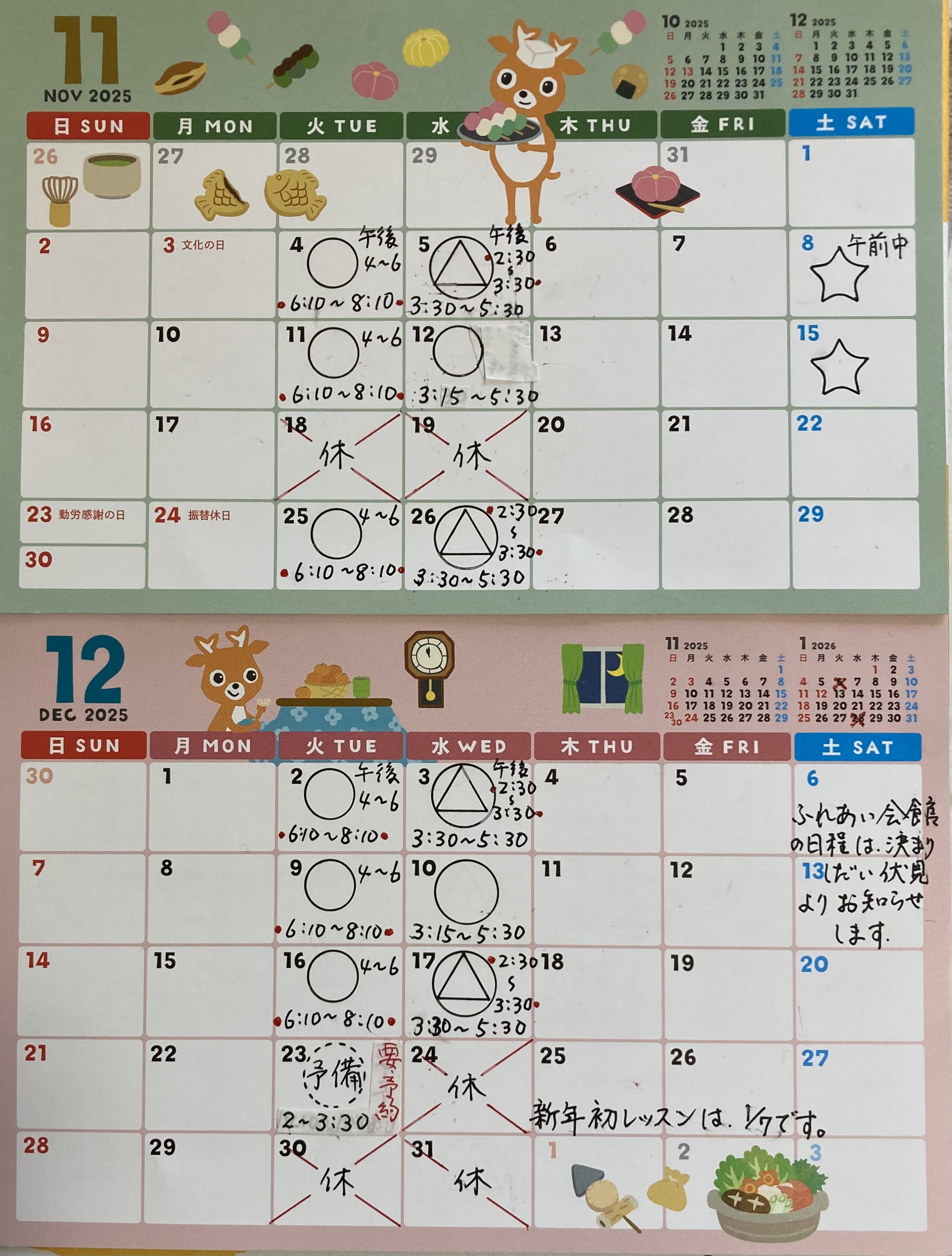 🗓11月~12月の早見カレンダー